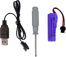 V paketu najdete polnilno baterijo 3,7 V 500 mAh, USB polnilec in orodje za vzdrževanje. Dovolj je vstaviti baterije AA v upravljalnik in se odpeljati.