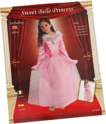 Ta otroški kostum princese je vir veselja in fantastične igre. Sestavljen je iz dolgih, rožnatih oblek z bogatimi detajli kot je potisk ogrlice in ovratnik, ki daje kraljevski videz. Kostum je primeren za otroke višine 110–120 cm, kar zagotavlja popolno prileganje in udobje med igro.