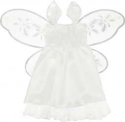 Kostum dopolnjujejo brokatna krila z bleščečim zaključkom, ki ustvarijo angelski videz.