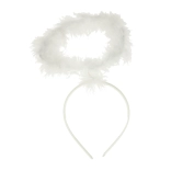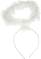 Set vsebuje tudi plastičen naglavni obroč z mehkim, peresnim materialom, ki tvori avreolo.