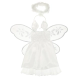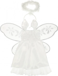 Otroški angelski kostum je idealna izbira za božič, noč čarovnic ali tematske zabave ter zagotavlja nepozabno doživetje. V setu so bele obleke, naglavni obroč z avreolo in bleščeča krila.
