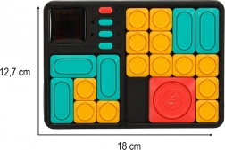 Ta elektronska drsna miselna igra bo preizkusila vašo potrpežljivost in iznajdljivost. Cilj je spraviti rdeči blok na spodnji rob igralne površine tako, da premikate ostale koščke po navodilih z LED-zaslona – brez dvigovanja kock. Čaka vas 500 premišljeno zasnovanih stopenj z vedno večjim izzivom.
