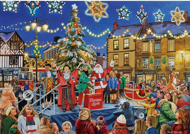 Vstopite v čarobni svet božiča s premium kompletom štirih sestavljank znamke GIBSONS. Vsaka sestavljanka ima 500 koščkov in v sestavljenem stanju meri približno 49 × 34 cm, zato je idealna za mizo ali podlogo za sestavljanje. Ilustracije prikazujejo tople družinske trenutke, slovesno okrašene trge ter božično veselje, ki vas popelje v praznično razpoloženje.