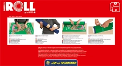 Del pakiranja so trije čvrsti tulci za stabilno navijanje, sama podloga in trije gumijasti trakovi za zanesljivo pritrditev. Na podlogi so natisnjene vodilne mere sestavljank JUMBO, zato boste od začetka natančno vedeli, kam polagati robove. Odlična rešitev za prihranek prostora doma in na poti.