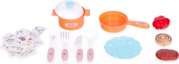 Lonec, ponev, krožnički, jedilni pribor in živila, dopolnjeni s sestavljanko, ki uči pravilnega ločevanja odpadkov – zabava povezana z učenjem.