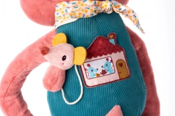 Ta velika plišasta mačka JEANNE otrokom prinaša pisan svet zaznav. Združuje mehke, rebraste in gladke tkanine, šušteče detajle, varno ogledalce in prisrčno miško za neskončno odkrivanje. Z domišljenimi aktivnostmi podpira razvoj čutov, koordinacijo oko–roka in radovednost.