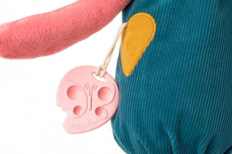 Srčkasti in metuljasti poudarki, barvna rutica in igrivi šivi prebujajo otroško radovednost ter prinašajo nove spodbude ob vsakem dotiku.