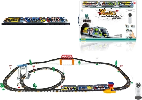 Ta barvit RC vlak z motivom grafitov je pripravljen na progo in bo razveselil vsakega malega ljubitelja železnic. Zaradi daljinskega upravljalnika s priseskom je upravljanje preprosto in zabavno, svetlobni in zvočni učinki pa vožnji dodajo avtentičnost. Garnitura je idealna za razvoj domišljije in fine motorike otrok.
