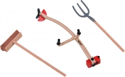 Figurica kmeta, samokolnica, grablje, vile in drugi dodatki za realistično delo na kmetiji.