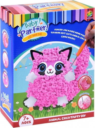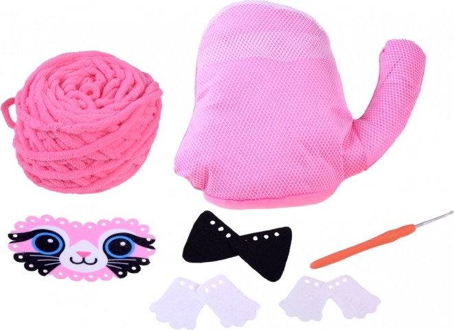 Blazinica v obliki mucke omogoča kreativno ustvarjanje brez uporabe igle in sukanca. Preprosto uporabite priloženo kvačko za prepletanje preje skozi mrežasto strukturo in tako ustvarite kožušček vašega ljubljenčka. Obraz, tačke in ušesa mucke pritrdite s prepletanjem preje skozi mrežo in odprtine v filcu. Končana blazinica bo krasila vsako otroško sobo in bo zaradi vaše lastne izdelave edinstvena.