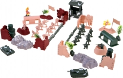 Vključuje različne plastične figurice, vozila in zgradbe, kar omogoča realistično in dinamično postavitev bojišča.