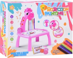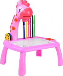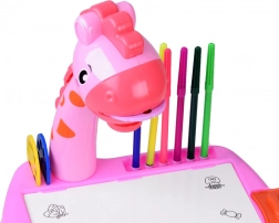 Projekcijska risalna miza Žirafa je idealna za male ustvarjalce. Projektor projicira slike na risalno površino, ki jih otrok zlahka obriše in pobarva. Zaradi kompaktnih mer lahko ploščo uporabljate na mizi ali jo postavite na priložene nogice kot majhno otroško risalno mizico.