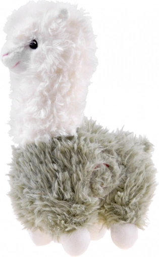 Ljubka plišasta alpaka z mehkim kožuščkom v kombinaciji bele in zelene barve bo razveselila vsakega otroka. Idealna je kot cartljiva igrača, pomirjujoči spremljevalec in dekoracija otroške sobe.