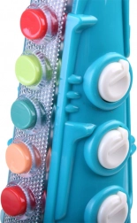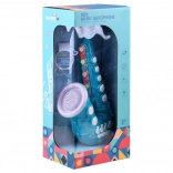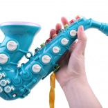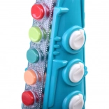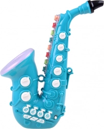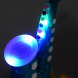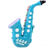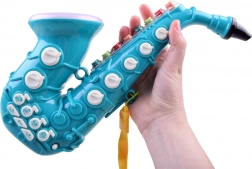 Ta barvit otroški saksofon spodbuja občutek za ritem, glasbeno zaznavo in motoriko. Po vklopu otroka pozdravi vesela melodija, prižgejo se osvetljeni elementi. Lahko posluša pripravljene skladbe ali ustvarja svoje – z upihovanjem v ustnik in pritiskanjem tipk kot na pravem instrumentu.