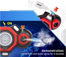 Ob zadetku jopič signalizira z zvokom in vibracijo. Po izločitvi igralca se aktivira privlačen učinek vodne meglice (po dolivanju vode v rezervoar), ki še okrepi vzdušje igre. Polnjenje orožja poteka z ročico za repetiranje; prazen nabojnik napove značilen zvok.