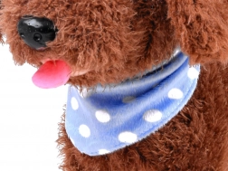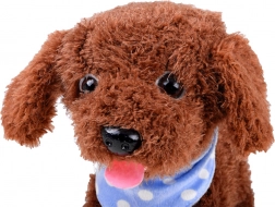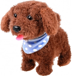 Kužek ob božanju oddaja zvoke, maha z repkom in kaže veselje – otroci tako doživijo realistično interakcijo.