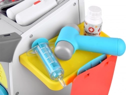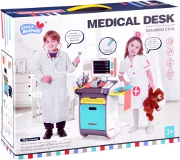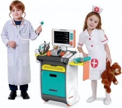 Otroški zdravniški voziček je odlično opremljen komplet za male medicince. Zaradi realističnih funkcij, kot so monitor EKG/RTG z zvokom, višinomerk in prostor za orodja, se otroci zlahka vživijo v vlogo zdravnika. Kakovostna plastična izvedba in enostavno upravljanje s kolesci zagotovita ure varne in ustvarjalne zabave.