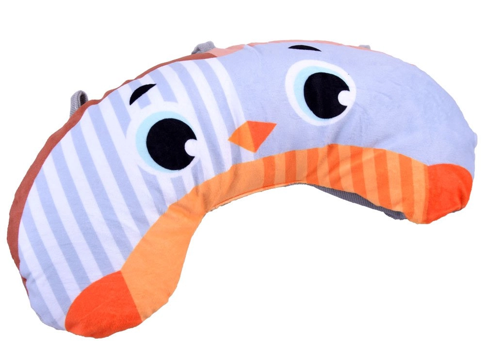Del kompleta je nabor tekstilnih živalic z različnimi teksturami in zvoki, sonček s pomirjujočo melodijo, ogledalce ter mehki vzglavnik za oporo glavice ali med časom na trebuščku. Blazina podpira prepoznavanje oblik in barv, učenje vzroka–posledice ter koordinacijo gibov.