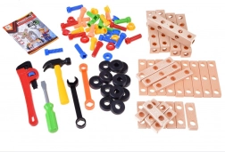 Del paketa so tudi otroška orodja – ključi, izvijač, kladivce in pomično merilo – ter slikovni priročnik, ki pomaga pri prvih stvaritvah. Komplet podpira družinsko zabavo in je odlična ideja za darilo za otroke od 3 let dalje.