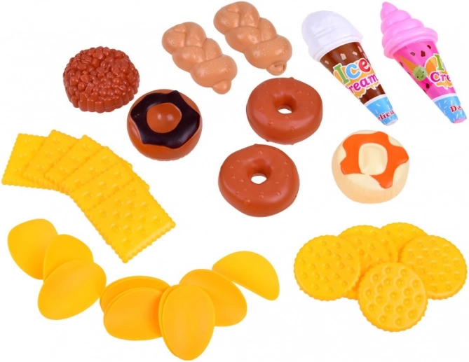 Verodostojno izdelani kosi, kot so piščančje krače, klobasice, sladoledi, piškoti ali škatlice sokov, spodbujajo ustvarjalnost in posnemanje odraslih v kuhinji in trgovini.