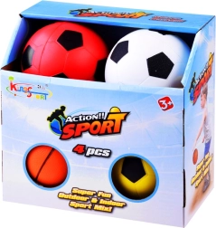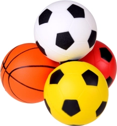 Set štirih penastih žogic 10 cm – nogomet in košarka