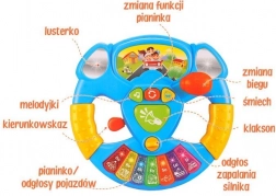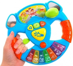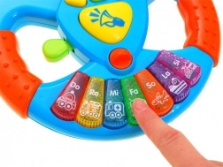 Interaktivni glasbeni volan je idealen spremljevalec na poti in za igro doma. Otroci se počutijo kot pravi vozniki zahvaljujoč avtentičnim učinkom in enostavnemu upravljanju. Barvne tipke Do–Re–Mi in drugi toni sprožijo melodije ter zvoke prevoznih sredstev, ki razvijajo sluh, koordinacijo in ritem.