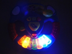 Volan ima pregledno gumbno upravljanje: gumb z noto zažene vesele melodije, zeleni gumb jih preklaplja, oranžni gumb z nasmehom pa predvaja otroški smeh. Kakovostna izdelava in prijetne barve zagotavljajo dolgo in varno zabavo tudi za najmlajše.