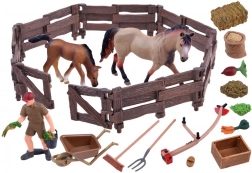 Komplet figuric konj in kmetije ponuja vse, kar otroci potrebujejo za ustvarjanje svoje male kmetije. Realistične oblike, skrbno barvanje in trpežni materiali zagotavljajo dolgo življenjsko dobo tudi pri vsakodnevni igri. Zahvaljujoč bogati opremi lahko mali kmetje svoje konjičke hranijo, čistijo in negujejo ter skrbijo za njihov izpust.