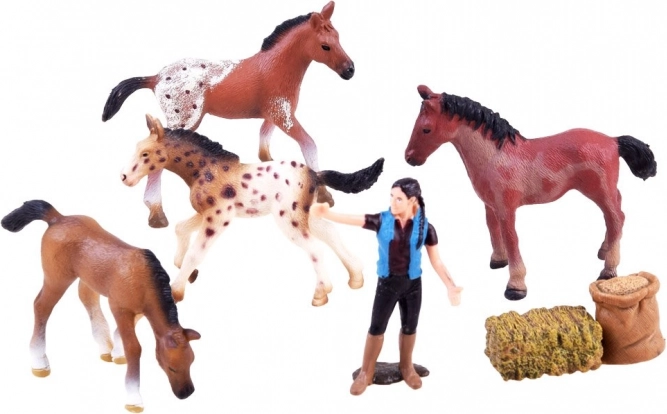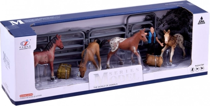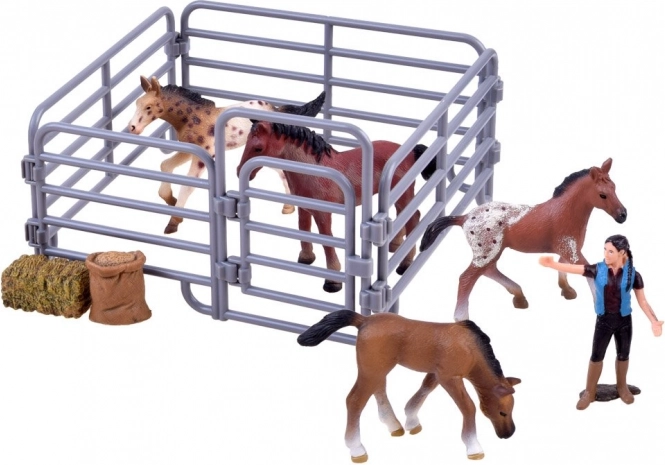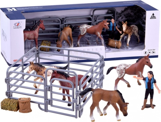 Ročno poslikan set konjičkov iz ograde: 4 žrebetca, gospodinja, ograda in dodatki. Realistični detajli, kreativna in izobraževalna igra. Odlično darilo.