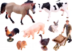 Vsebina pakiranja: krava, konj, petelin, pujsek, zajček, kunec, gos in kmet s samokolnico. Vsaka figurica je ročno poslikana in pripravljena za ustvarjanje neskončnih prizorov in zgodb.