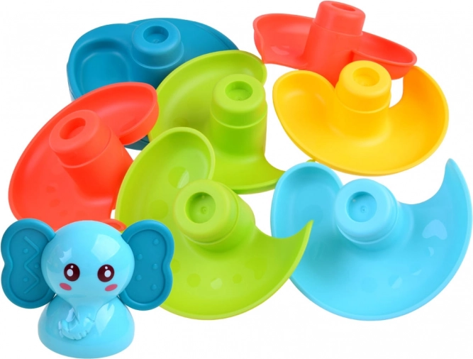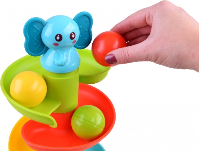 Barvita kroglična steza s slončkom – spiralna piramida za otroke