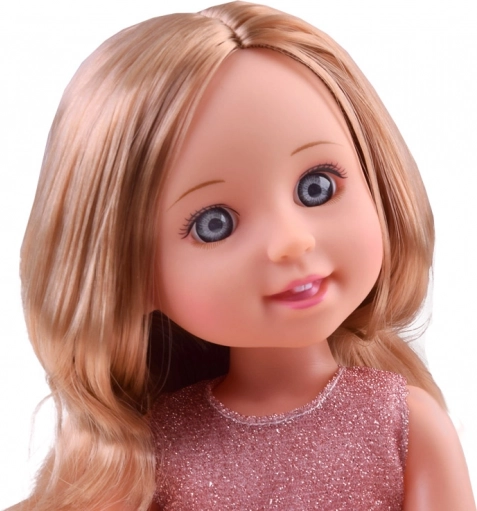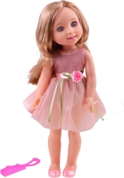 Ta elegantna punčka v nežni bledo rožnati bleščeči obleki je idealna za igro plesa, petkovega čaja in vsakodnevne zgodbe. Dolge blond lase je mogoče česati, urejati in pripenjati v različne pričeske, kar spodbuja otroško domišljijo in fino motoriko.