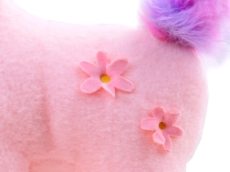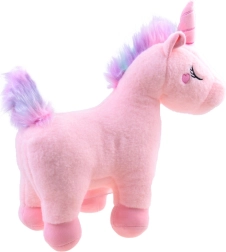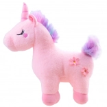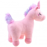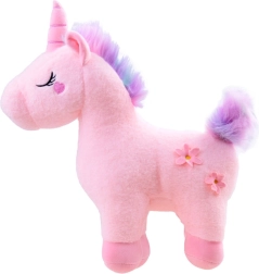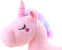 Pastelna rožnata, mavrična griva in mehak rožnat rog očarajo na prvi pogled ter spodbujajo otroško domišljijo.