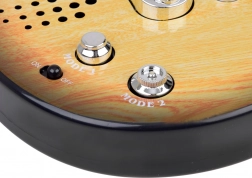 - Način 2: Predvajanje prednastavljenih melodij z možnostjo spremljave – ob dotiku strun se dodajajo dopolnilni zvoki za pravi koncertni doživetje. Preklapljanje melodij poteka z gumbom »MODE 2«.