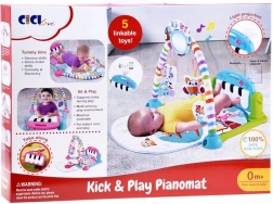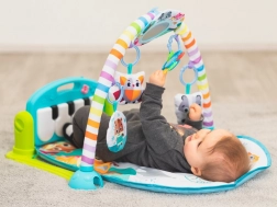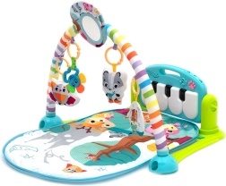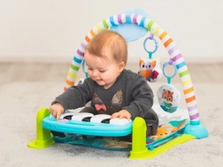 Interaktivni klavir s svetlobnimi učinki in melodijami spodbuja otroke k gibanju z nogicami in ročicami. Viseče igrače, ropotuljice in otroško ogledalce razvijajo vid, sluh in tip ter podpirajo koordinacijo oko–roka. Podloga je mehka, prijetna na dotik in enostavna za vzdrževanje.