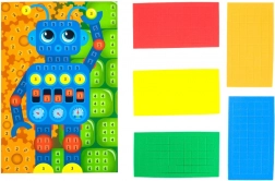 Ta preprost in barvit set bo razveselil vse male ustvarjalce. Na kartonsko podlago se po predlogi ali lastni domišljiji lepijo samolepilni penasti koščki, zato si otrok igrivo izdela čudovito sliko brez nereda in brez potrebe po lepilu ali škarjah.