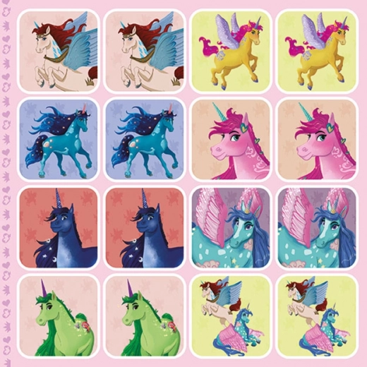 Ta spomin v zvezku s čarobnim motivom samorogov prinaša veliko igralne in ustvarjalne zabave. Po izrezu dobite 64 kartic za urjenje spomina, poleg tega pa si preprosto izdelate lastno škatlico za njihovo shranjevanje. Štirje pobarvankarski listi spodbujajo ustvarjalnost in prijetno podaljšajo čas ob igri.