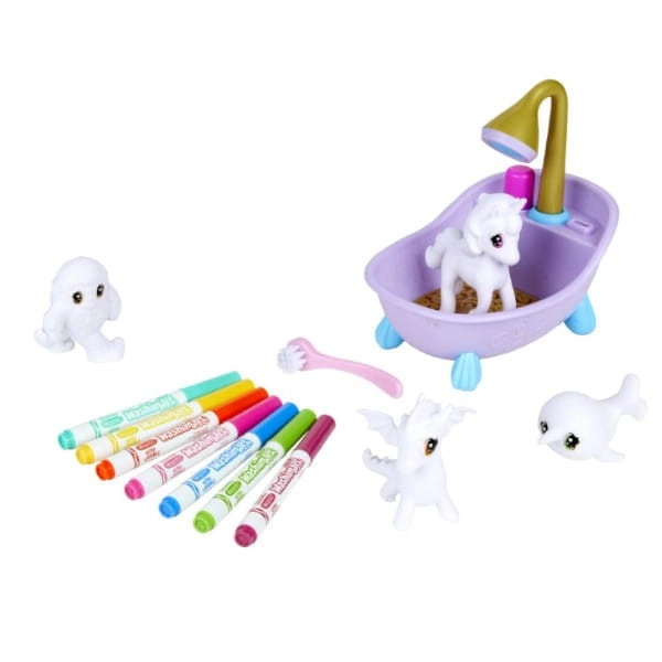 Crayola Washimals je komplet z živalicami za barvanje.Živalice pobarvaj s posebnimi flomastri, nato pa okraske speri.Ponovno pobarvaj... in spet...