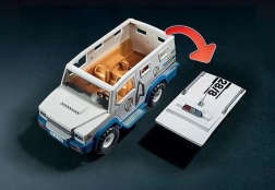Proslavite 50 let znamke PLAYMOBIL s posebnim izidom priljubljenega policijskega kompleta. Transporter z denarjem, predrzen goljuf in hiter motor ustvarjajo napete prizore, polne akcije. Zahvaljujoč odstranljivi strehi in odpirajočim se zadnjim vratom je igra tekoča in dinamična.