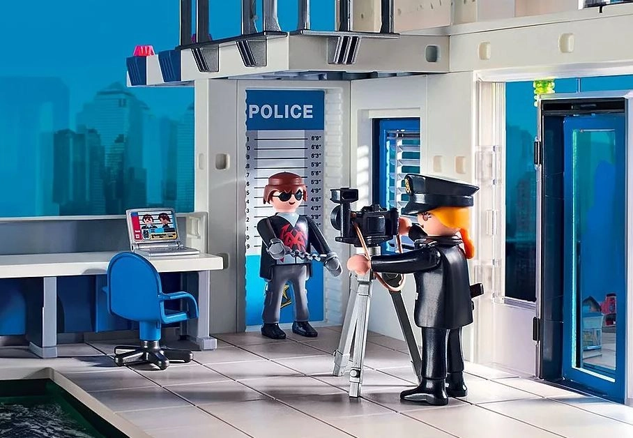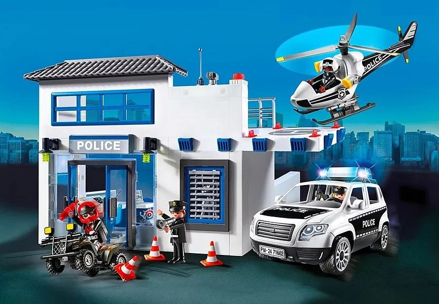 V poveljniškem centru velike policijske postaje so prejeli klic v sili. Iskani zlikovec beži na štirikolesniku! Velika vrata postaje so že odprta in zasledovanje s sirenami se začne. Ko je osumljenec ujet, mu vzamejo prstne odtise in zločinec je identificiran. Zaporniku pa uspe pobegniti iz dveh celic skozi luknjo v zidu. Policijska postaja ima prostor za policijski avto (ni del paketa) in na strehi pristajalno ploščad za helikopter.