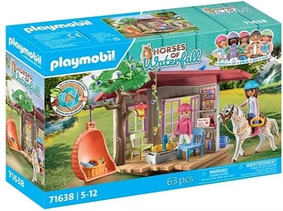 Podajte se na jahalno pustolovščino s skrivnostnim PLAYMOBIL Klubom ljubiteljev konj! Za majhnim slapom, v notranjosti gozda, si je jahalna ekipa prijateljev Waterfall uredila prijetno klubsko skrivališče z udobno gugalnico in praktično tajno schránko! Idealno mesto za počitek po dolgem jezdenju ali za skrivna srečanja članov kluba. Isabella in Amelia vedno prineseta skodelico vroče čokolade in okusne preste. Prijazen konj prisluhne hihitanju skupine prijateljev in čivkanju ptic.