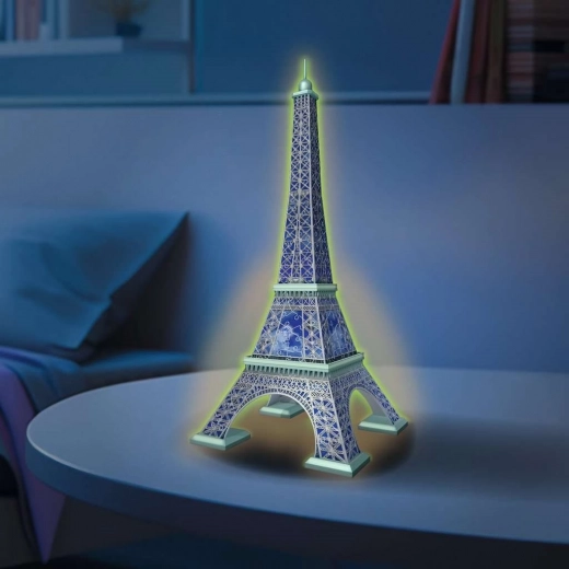 Zgradite legendarni Eifflov stolp kot sijočo dekoracijo! Te kakovostne 3D sestavljanke znamke RAVENSBURGER vsebujejo 224 plastičnih kosov, ki natančno prilegajo drug k drugemu in ustvarijo stabilen 3D model. Poseben fluorescenčni tisk po osvetlitvi v temi sveti, zato postane model edinstven dodatek vašemu prostoru.