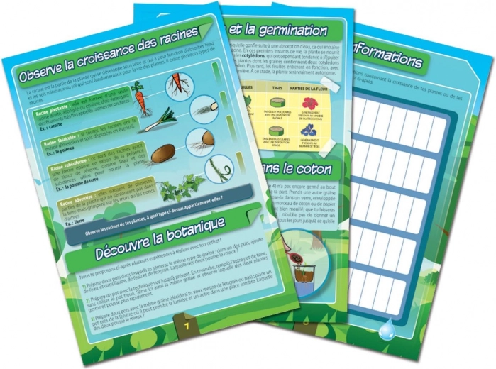 V pakiranju najdete celotno opremo za varne in enostavne prve poskuse: podstavek, prozorno posodo, notranjo posodo z drenažo, podporno palico, pipeto, lopatko, vrečke s semeni, ekspandirano glino ter bogato ilustriran priročnik v jezikih CZ, SK, HU. Idealno kot STEM igrača za razvoj radovednosti, potrpežljivosti in osnovnih naravoslovnih veščin.