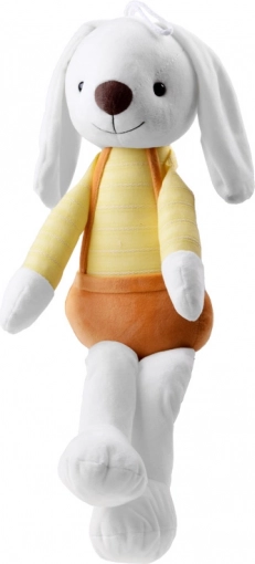 Ta nežni zajček bo hitro postal najljubši prijatelj vaših otrok. Zaradi prijetnega tekstilnega materiala vabi k objemanju, je lahek in se odlično prilega otroškim rokam. Deluje pomirjujoče ob uspavanju in med poslušanjem pravljic.