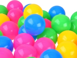 Ta set vsebuje 100 barvnih kroglic, ki so odlične za otroške igralne prostore. Kroglice imajo premer 6,5 cm in so na voljo v štirih živahnih barvah: roza, rumena, zelena in modra, kar zagotavlja njihovo privlačnost za otroke ter spodbuja zabavo.