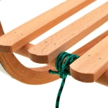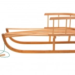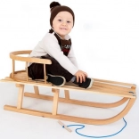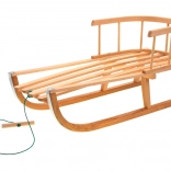 Sani so opremljene z naslonom za varno sedenje in imajo vrvico z lesnim ročajem, kar omogoča enostavno vleko.