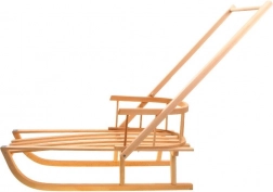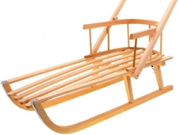 Naše sani so idealne za zimske radosti. Popolnoma narejene iz lakiranega lesa, ponujajo udoben in varen sedež z naslonom za otroka. Močne kovinske sani prispevajo k njihovi stabilnosti in enostavni drsnosti po snegu.
