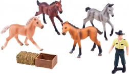 V paketu najdete figurico gospodarja, štiri prisrčna žrebeta, dele ograde, korito in balo sena – vse za ustvarjanje popolne kmečke scene. Idealno kot darilo za rojstne dneve in praznike, ki spodbuja kreativnost, igranje vlog in znanje o življenju na podeželju.