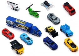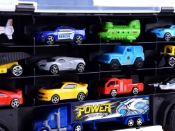 Velik komplet tovornih vozil z avtomobilčki je ODLIČNA ideja za vsakega zbiratelja malih avtomčkov. Vlekač s prikolico za prevoz avtomobilčkov vam omogoča ureditev vaše zbirke tako, da se noben dragocen avto ne izgubi ali pomeša. Ta tovornjak je namenjen otrokom, ki imajo radi red med svojimi igračami.