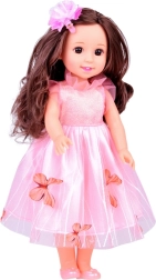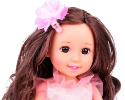 Elegantna punčka višine 36 cm bo razveselila male princeske na zabavah in ob čajankah. Ima dolge, pričesljive temne lase s cvetlično sponko, nosi rožnato obleko s tilom in metuljčki in na nogah snemljive balerinke z mašnicami. Spodbuja razvoj domišljije, ustvarjalnosti in socialnih veščin ter je idealna za otroke od 3 let.